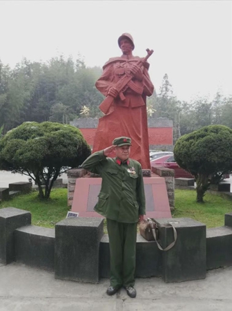 5月的桂北山區,晨霧還未散盡。一位身形瘦削的老人,正沿著(zhù)廣西柳州市鹿寨縣江口鄉烈士陵園的198級臺階,一步一步向上攀登。他佝僂著(zhù)背,腳步緩慢卻堅定,胸前的“光榮在黨50年”和“中國人民志愿軍抗美援朝出國作戰70周年”紀念章熠熠生輝。