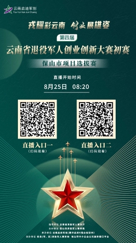 戎耀彩云南,創(chuàng )業(yè)展雄姿! 8月25日,第四屆云南省退役軍人創(chuàng )業(yè)創(chuàng )新大賽初賽——保山市項目選拔賽將在保…
