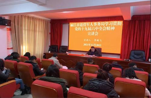 近日,麗江市退役軍人事務(wù)局開(kāi)展學(xué)習貫徹黨的十九屆六中全會(huì )精神宣講。 宣講會(huì )上,市退役軍人局黨組書(shū)記、…