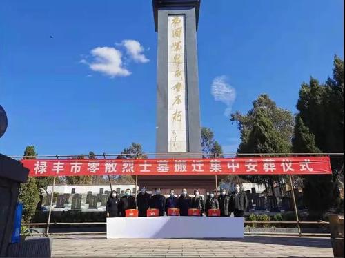 近日,祿豐市舉行零散烈士墓搬遷集中安葬儀式,5位英烈遷移至金山鎮鐵道兵烈士陵園集中安葬。安葬儀式在婉…
